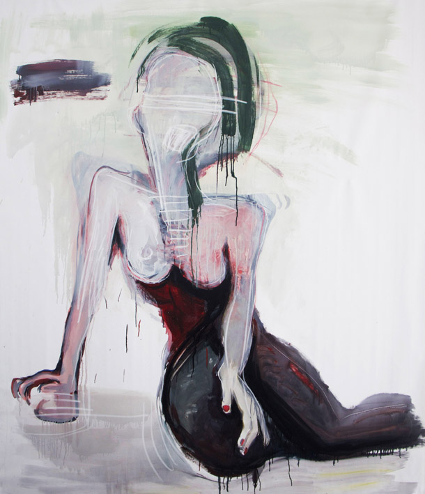Nella ricerca pittorica prevale l’approccio espressionista; la brutalità dei segni e la modellazione aggressiva e sintetica trasformano i corpi in manichini, i volti in maschere, gli sguardi in espressioni enigmatiche e mute.