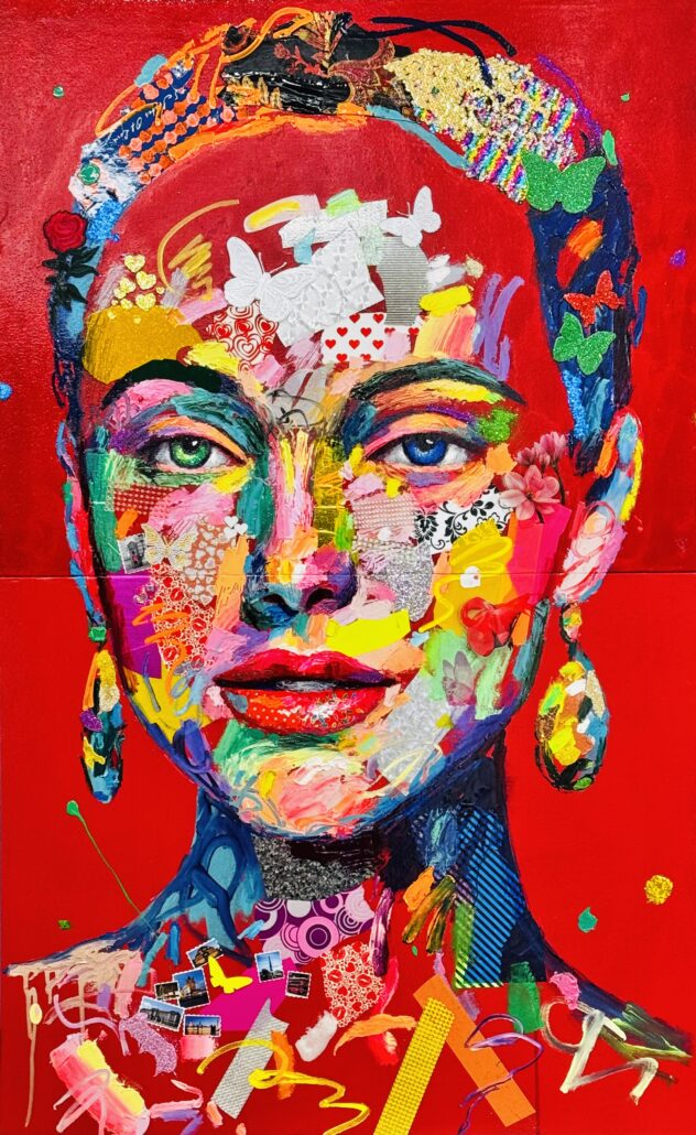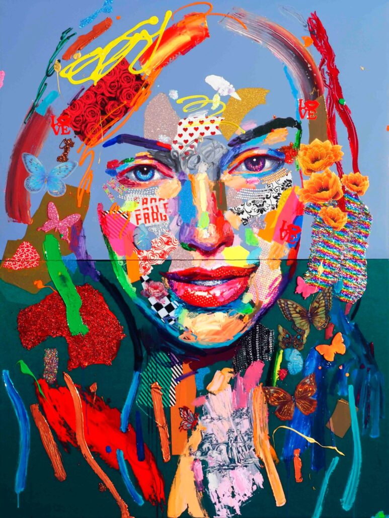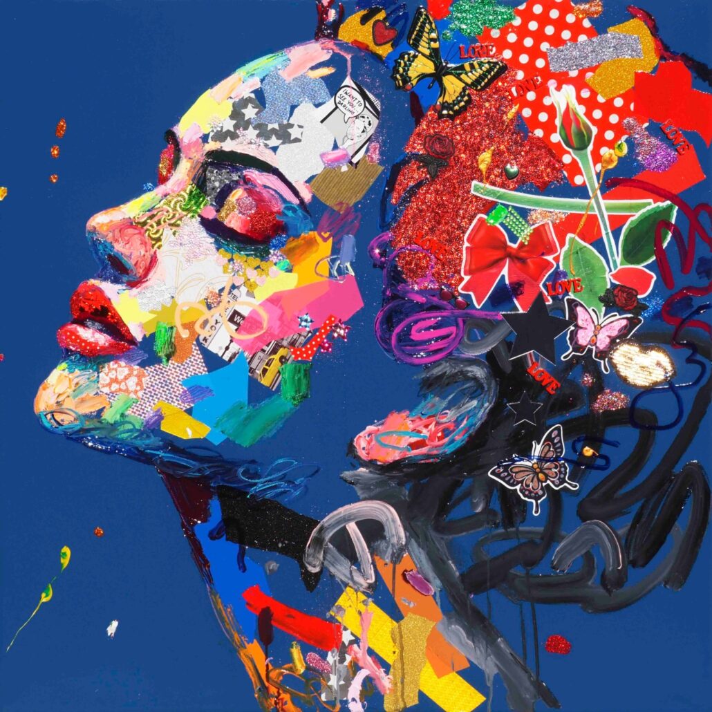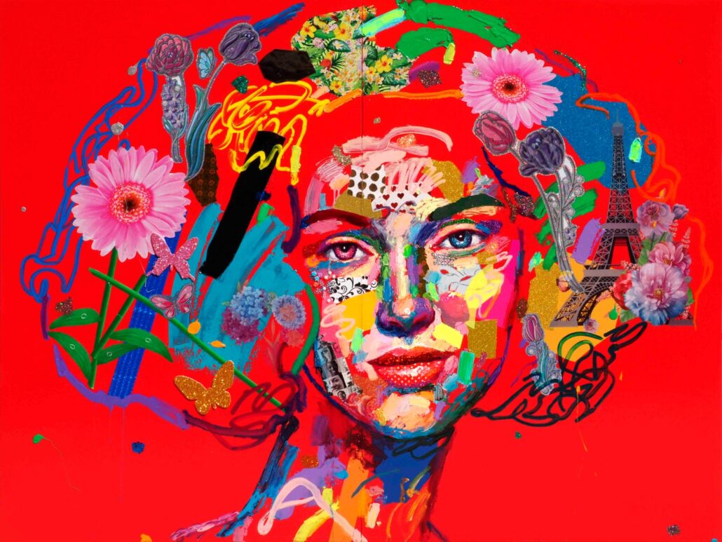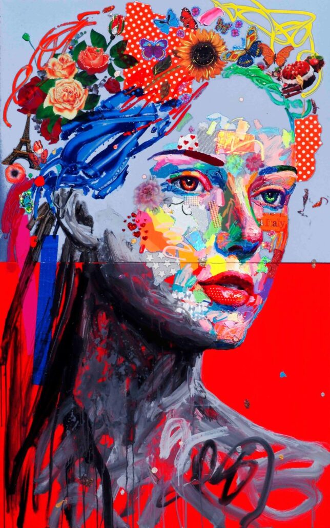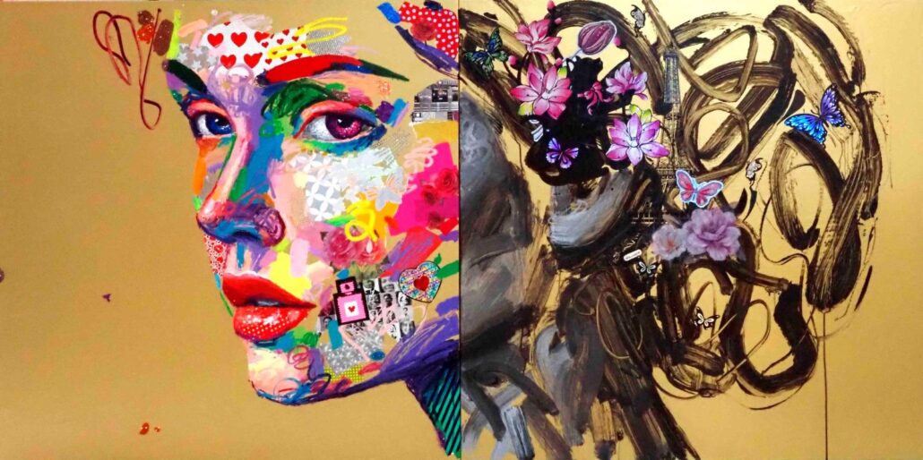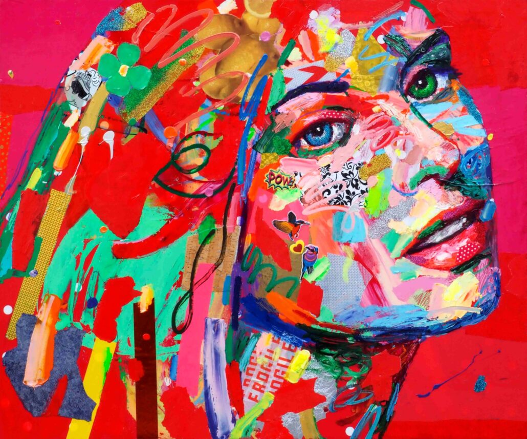 Murgia ci sorprende con audaci accostamenti cromatici, con dittici per metà in bianco e nero e metà a colori, con l’uso di vernici spray e di inserti dalla natura quanto mai eterogenea. Ma sopratutto ci sorprende con una sensibilità pop, frammista a una notevole cultura e uno studio personalissimo sulla figura umana, sulle proporzioni femminili. Ma non è tutto: c’è la gestualità sicura e caleidoscopica, c’è l’assonanza/dissonanza tra i tanti materiali, c’è la grande personalità che l’artista riesce a trasmettere a ogni sua creazione.