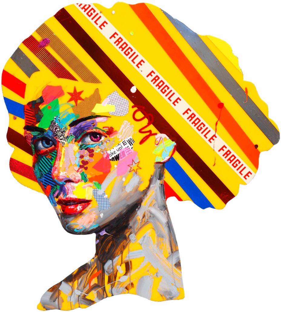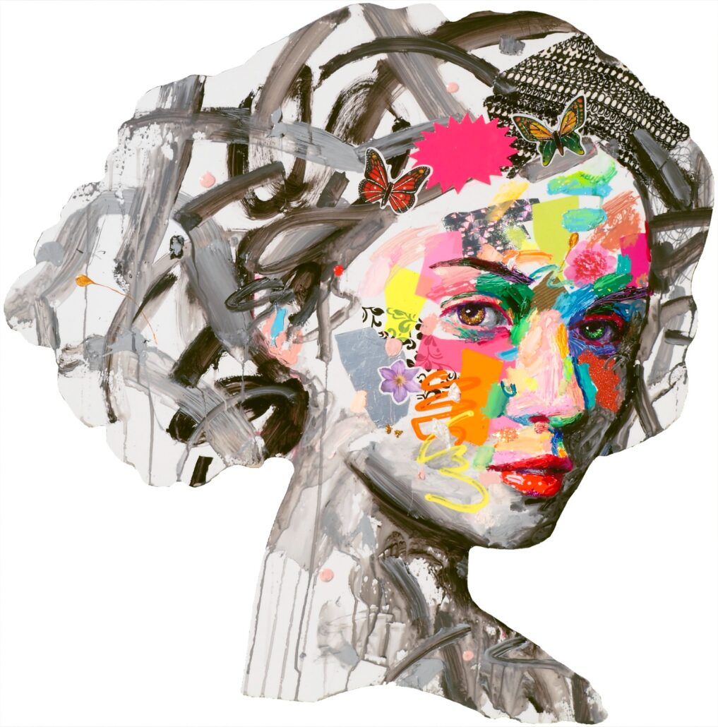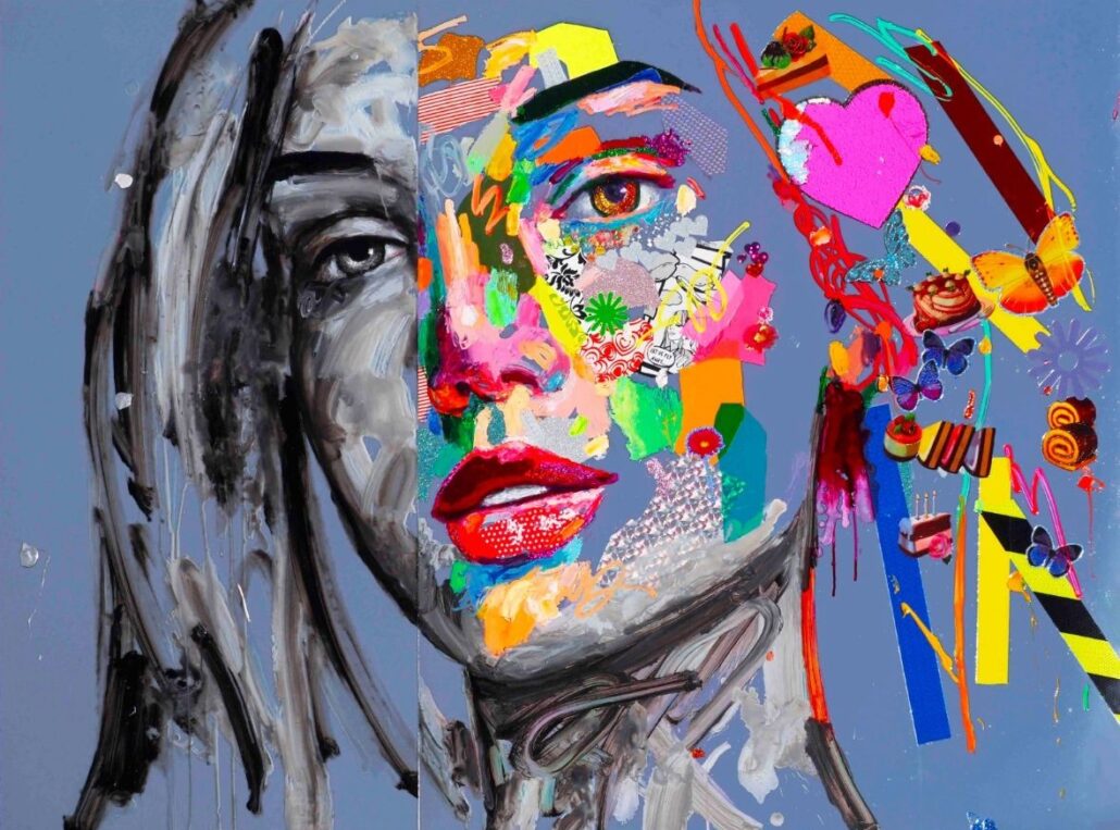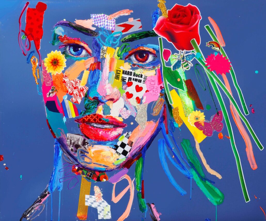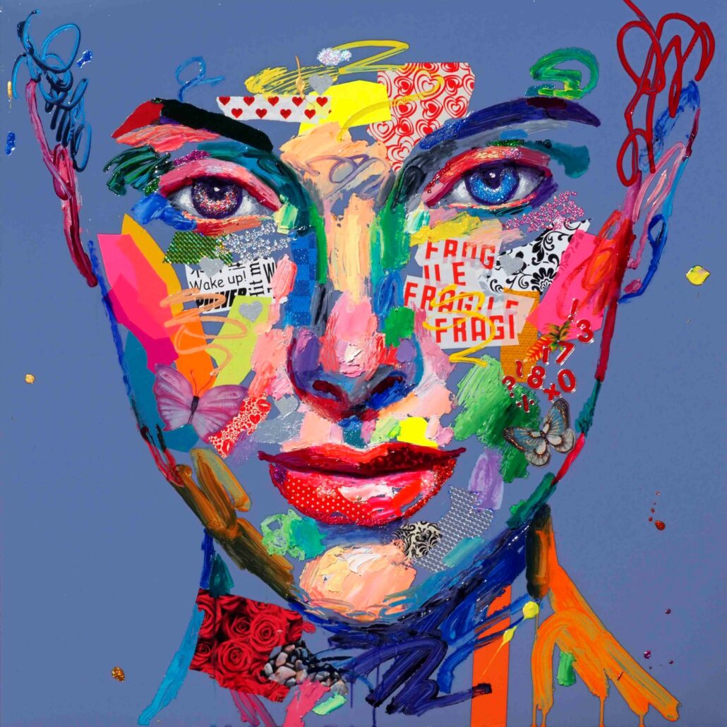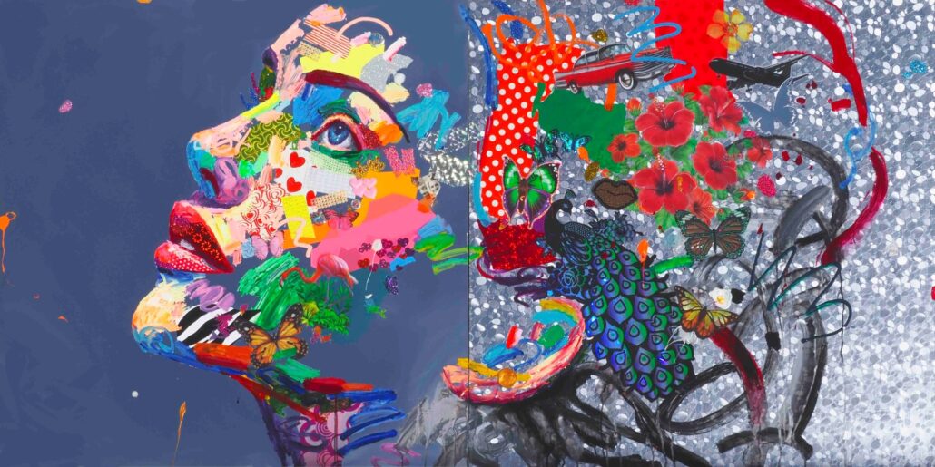 Murgia ci sorprende con audaci accostamenti cromatici, con dittici per metà in bianco e nero e metà a colori, con l’uso di vernici spray e di inserti dalla natura quanto mai eterogenea. Ma sopratutto ci sorprende con una sensibilità pop, frammista a una notevole cultura e uno studio personalissimo sulla figura umana, sulle proporzioni femminili. Ma non è tutto: c’è la gestualità sicura e caleidoscopica, c’è l’assonanza/dissonanza tra i tanti materiali, c’è la grande personalità che l’artista riesce a trasmettere a ogni sua creazione.