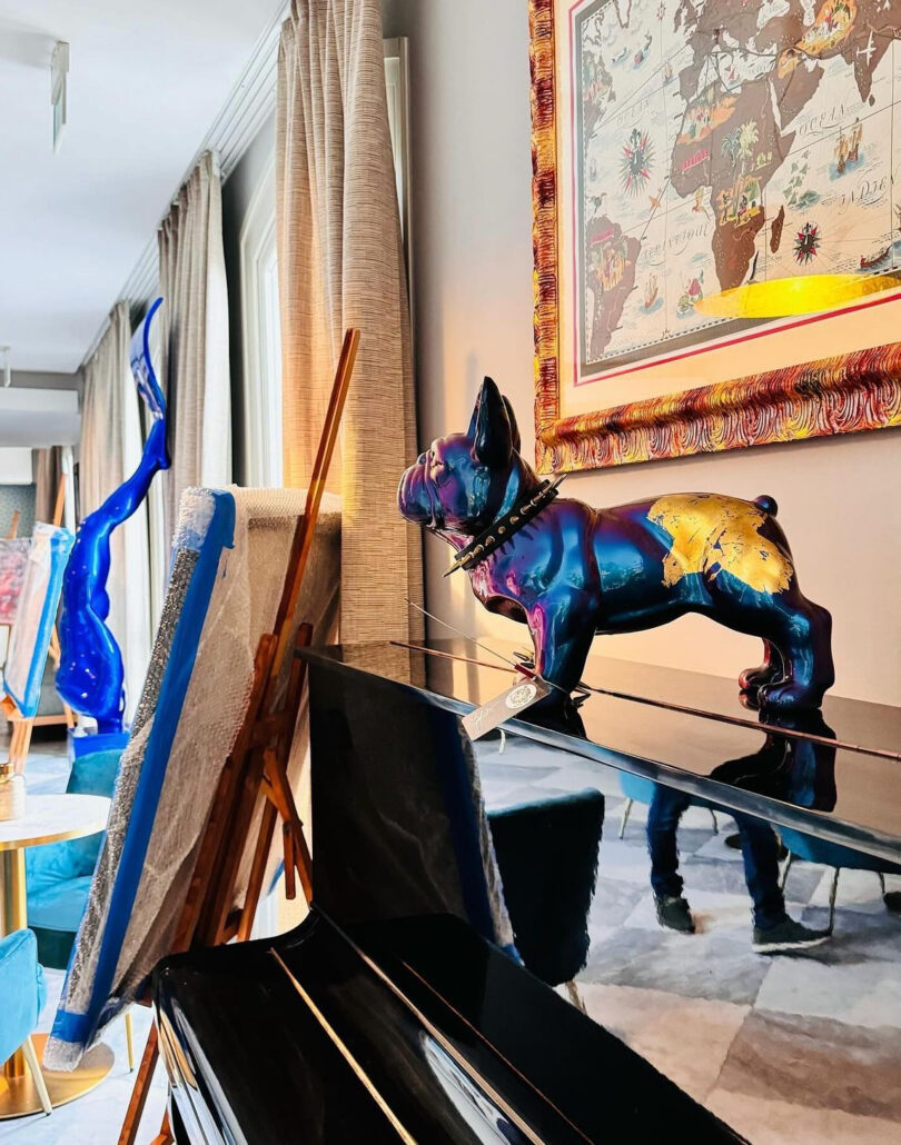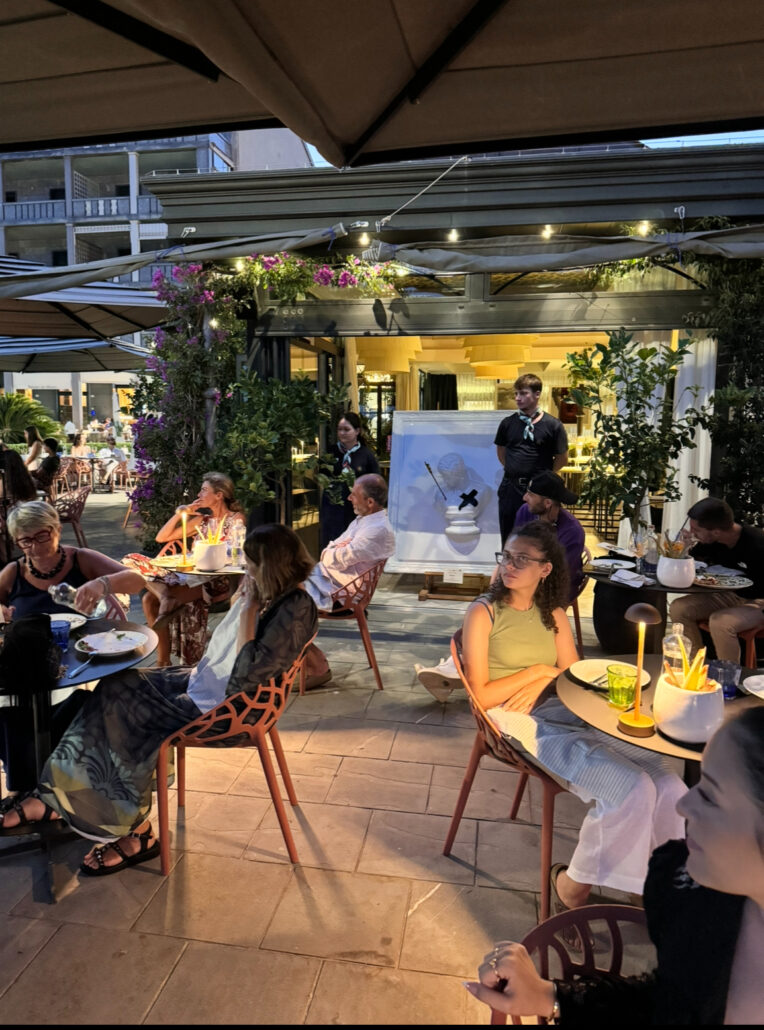 Durante la cena gourmet preparata dai “Maestri della Pizza” dell’hotel, gli ospiti hanno conosciuto l’arte Superpop di Ivano Facchetti, attraverso una breve presentazione, prima, e poi una performance. Nella calda serata di mezza estate l’opera dell’artista è stata una boccata d’aria fresca: ispirazione e perfezione della sua arte, perfettamente incastonata in uno spazio esclusivo che come una stella luminosa fresca e cool ha guidato nella notte tutti gli ospiti.