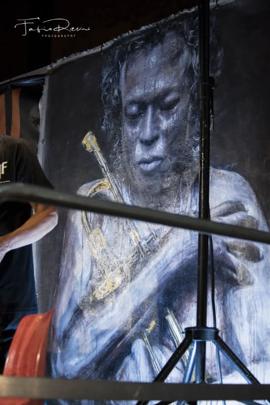 Alla tredicesima edizione dell’Albenga Jazz Festival, svoltasi dal 24 al 27 agosto nella suggestiva cornice della Città delle Torri, due grandi ritratti hanno impreziosito la scena e catturato lo sguardo del pubblico: Miles Davis e Thelonious Monk, due giganti senza tempo del jazz. Le opere, firmate dall’artista vigonese Claudio Massucco e realizzate appositamente per l’evento, sono nate grazie al coordinamento dell’Art Director Alberto Marinelli, che ha promosso la collaborazione con le Rapalline in Jazz. Su due imponenti tele di juta (200 x 170 cm), i volti del leggendario trombettista e dell’iconico pianista hanno fatto da cornice ai palchi principali, diventando un simbolico dialogo tra arte visiva e musica. La loro presenza ha ispirato le performance degli artisti in programma, aggiungendo un ulteriore tocco di intensità a un festival che continua a crescere anno dopo anno. Le opere sono ora esposte presso la galleria.
