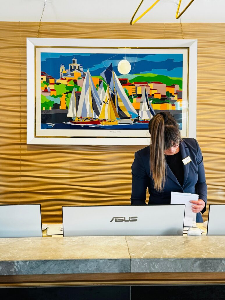 La partnership con il prestigioso Grand Hotel Alassio si è rinnovata anche per il 2025. Grazie alla calorosa accoglienza che ci è stata riservata, abbiamo trasformato la hall e gli spazi comuni in una piccola galleria. Le nostre proposte per quest’anno sono diversificate: dalla pittura emozionale ed esplosiva di Antonio Murgia, alle preziose serigrafie del maestro Ugo Nespolo, fino ai paesaggi marini restituiti dalle dinamiche pennellate di Gianluca Motto.